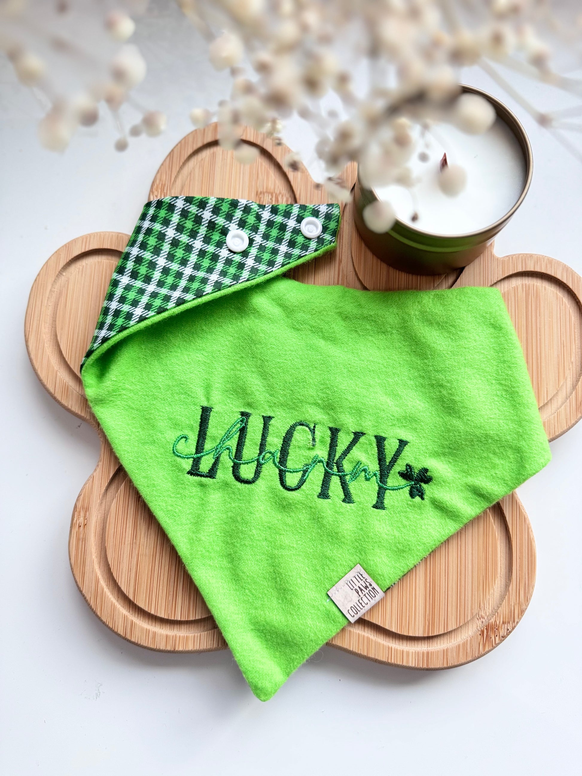 - Every bandana features a set of BPA free plastic snap-ons along with our cork leather logo labels