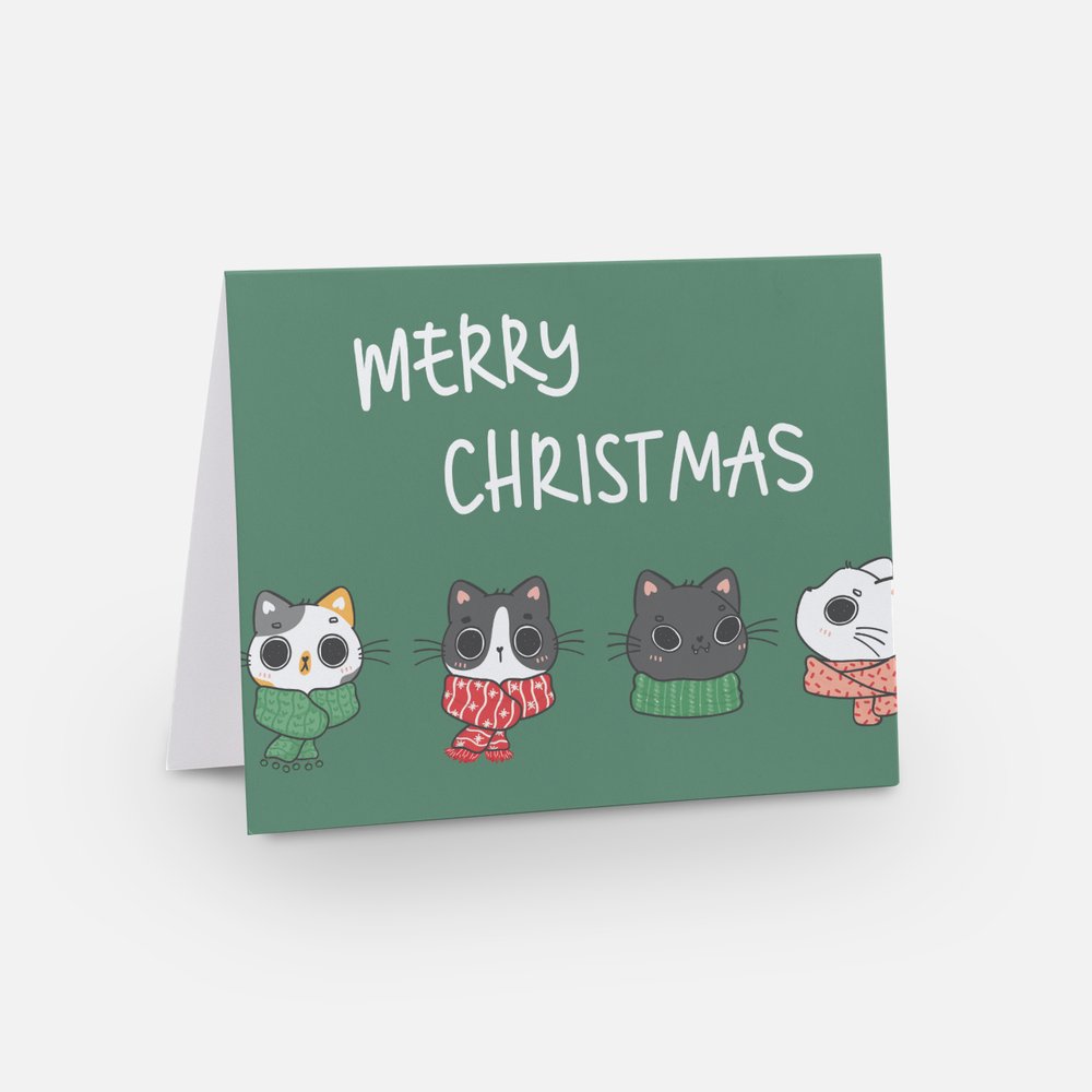 Merry Christmas Cat Card (green)